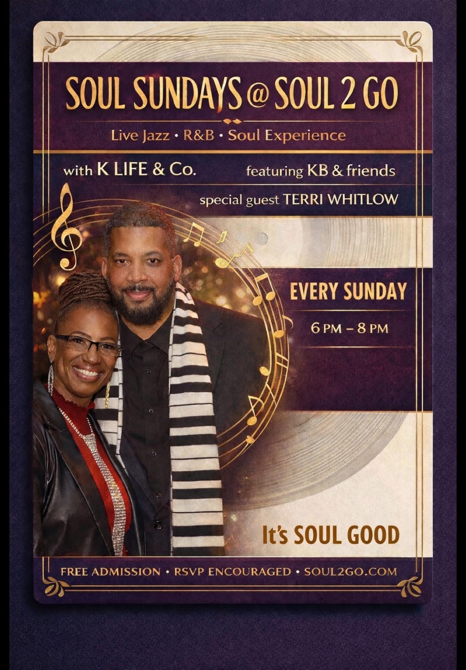 Join us every Sunday for LIVE music featuring the K Life & Company with Kabaka, Terri Whitlow & Friends — delivering soul-stirring performances you won’t forget!